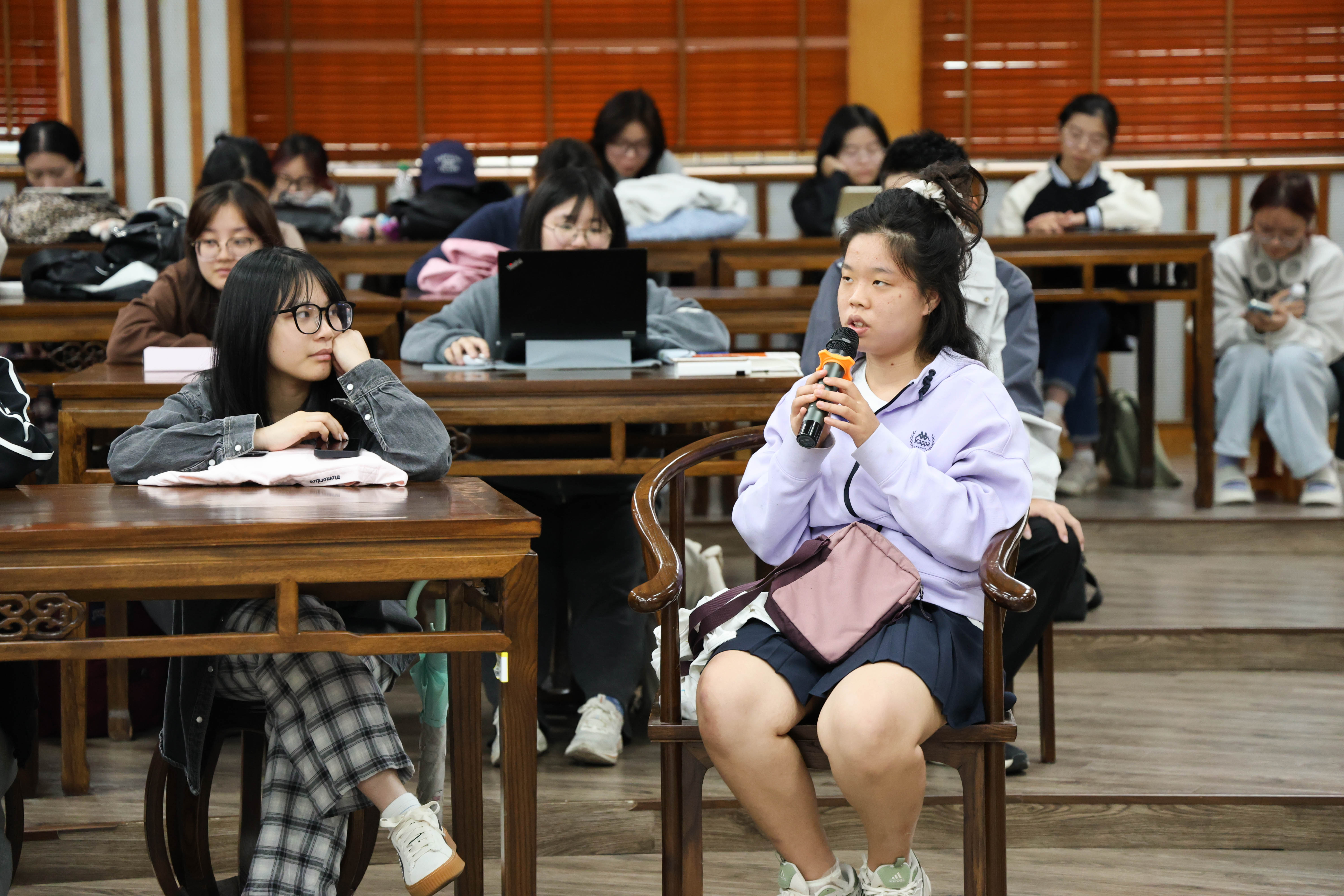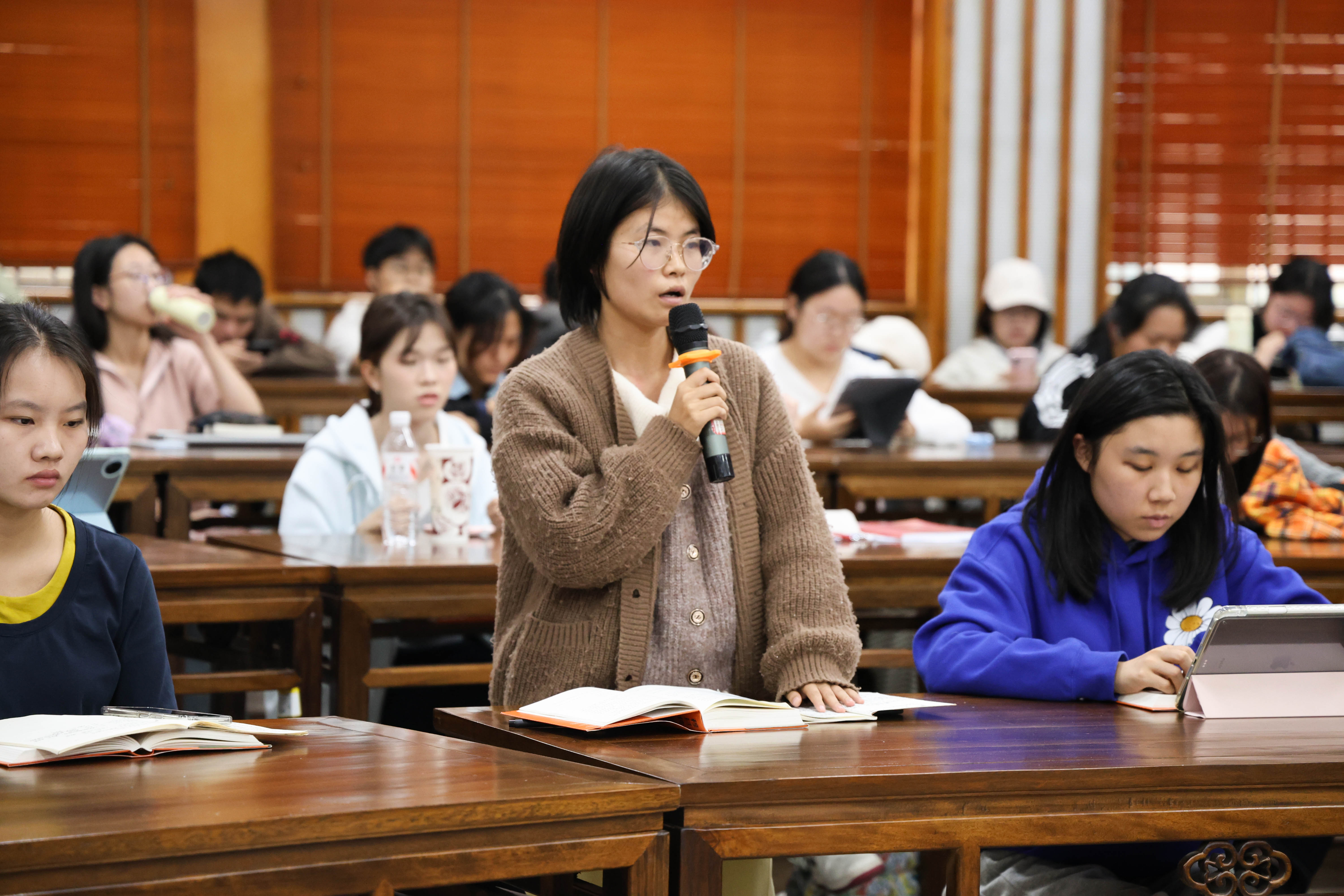 活动伊始,袁慧兰老师向在场师生介绍了对谈嘉宾及其著作。诗人、评论家邹汉明先生,长期致力于诗歌、散文、传记及文学批评创作,其新著《穆旦传:新生的野力》于2025年2月由译林出版社出版。该书通过大量史料搜集与人物访谈,力图还原一个真实而丰富的穆旦。蔡海燕老师则是一位深耕欧美文学研究的青年学者,科研成果丰硕,是奥登研究的专家,出版多部有关奥登研究的著作。且于2024年获得教育部高等学校科学研究优秀成果青年奖。本次悦读会以对谈形式,引领听众走进穆旦所处的激荡年代。
