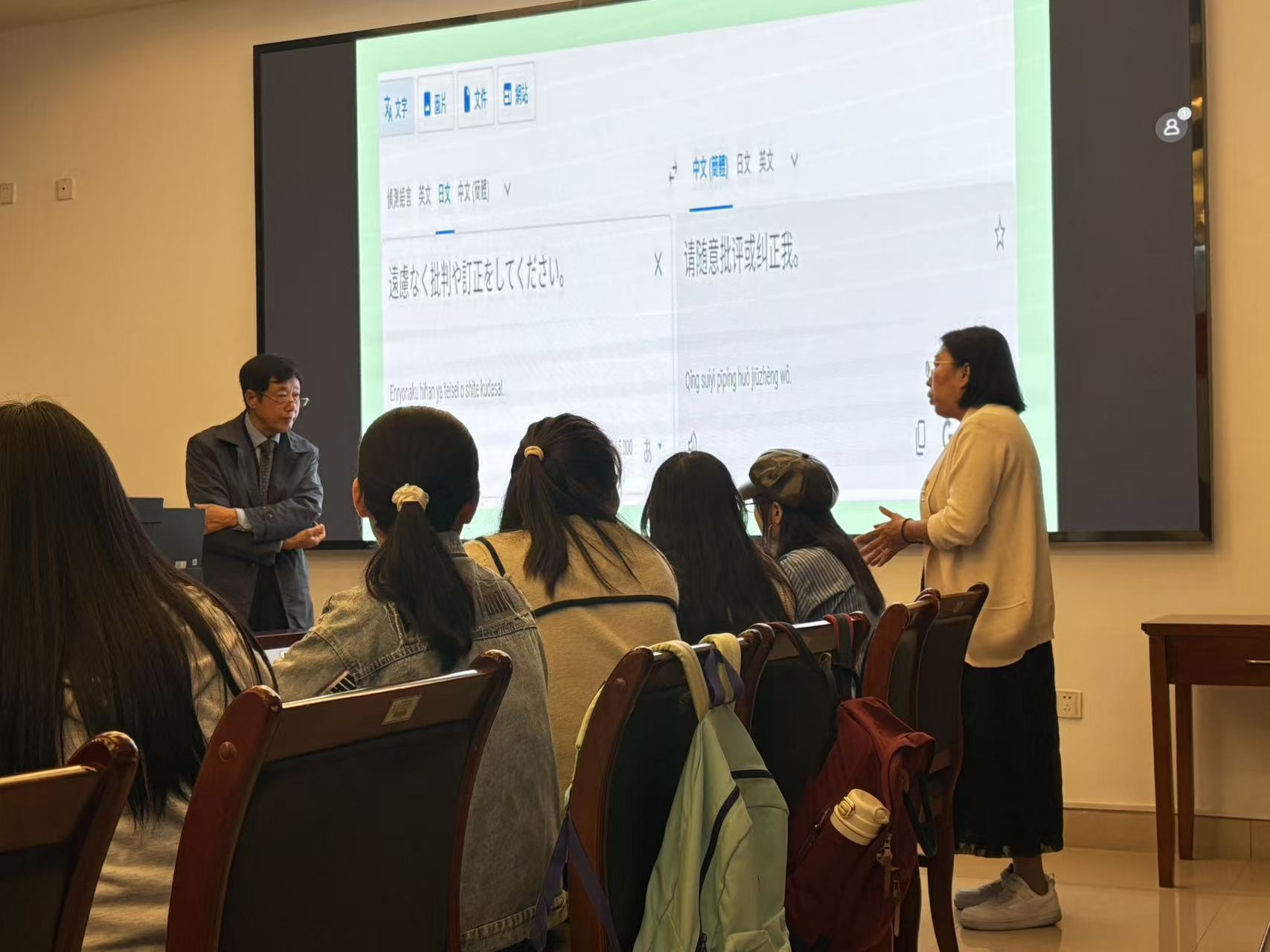 10月31日晚上,国际中文教育界和语法学界杰出学者、日本北九州市立大学王占华教授应邀为学院研究生带来一场题为 “从AI的误译看语际语言学研究新课题” 的学术讲座。讲座由学院国际中文教育专业硕士学位点负责人付伊副教授主持,国际中文教育以及语言学专业的教师与研究生到场聆听。