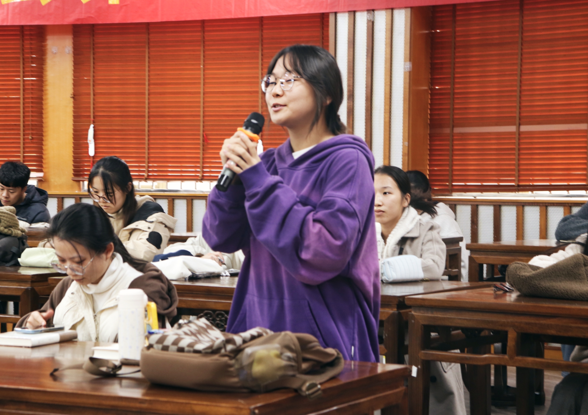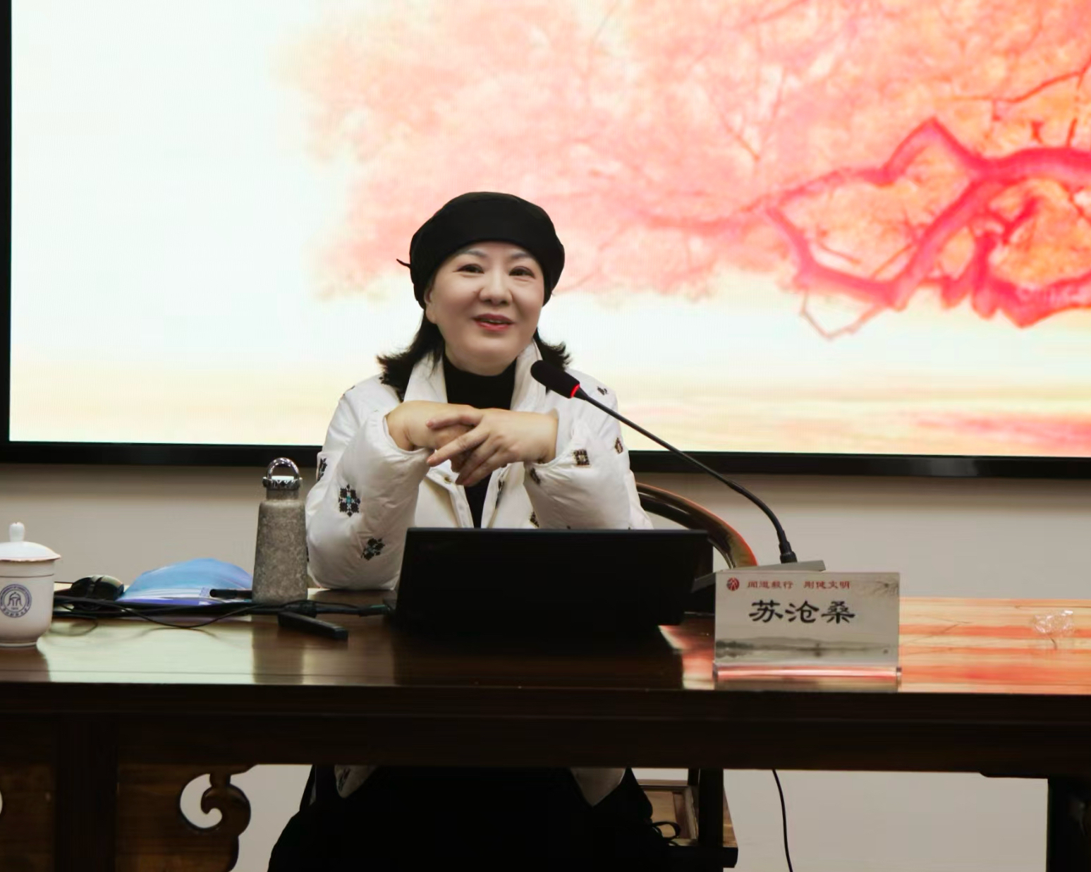 12月2日下午,浙江财经大学第四十二期“思齐”悦读会在人文传播学院问津书院顺利举行。本次活动以“探寻非遗与文学之美”为主题,特邀中国作家协会会员、中国散文学会理事、浙江省作家协会散文委员会主任、浙江省散文学会常务副会长苏沧桑担任主讲嘉宾,人文与传播学院党委副书记袁慧兰主持本次活动,二十余名师生参与此次读书会。