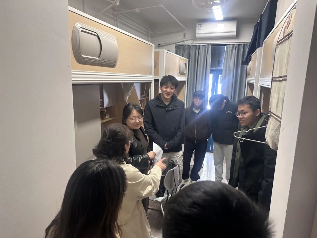 倾听成长心声,回应所盼所需。每入一间宿舍,老师们都与同学们畅谈,关切询问假期经历、返校适应与身心状况,耐心了解大家在学业、生活中遇到的实际困难。"寒假过得充实吗?""新学期课程安排如何?""对未来发展有什么打算?"针对不同年级特点,老师们分层分类给予指导:对大一学生,着重关心学业适应与校园融入,鼓励打牢专业根基、积极参与实践;对大二、大三学生,围绕专业深耕与职业规划精准引导,帮助大家明确方向、早做准备;对毕业生,实时跟进考研复试与求职进展,缓解焦虑情绪,提醒用好学院资源,从容迈好离校第一步。