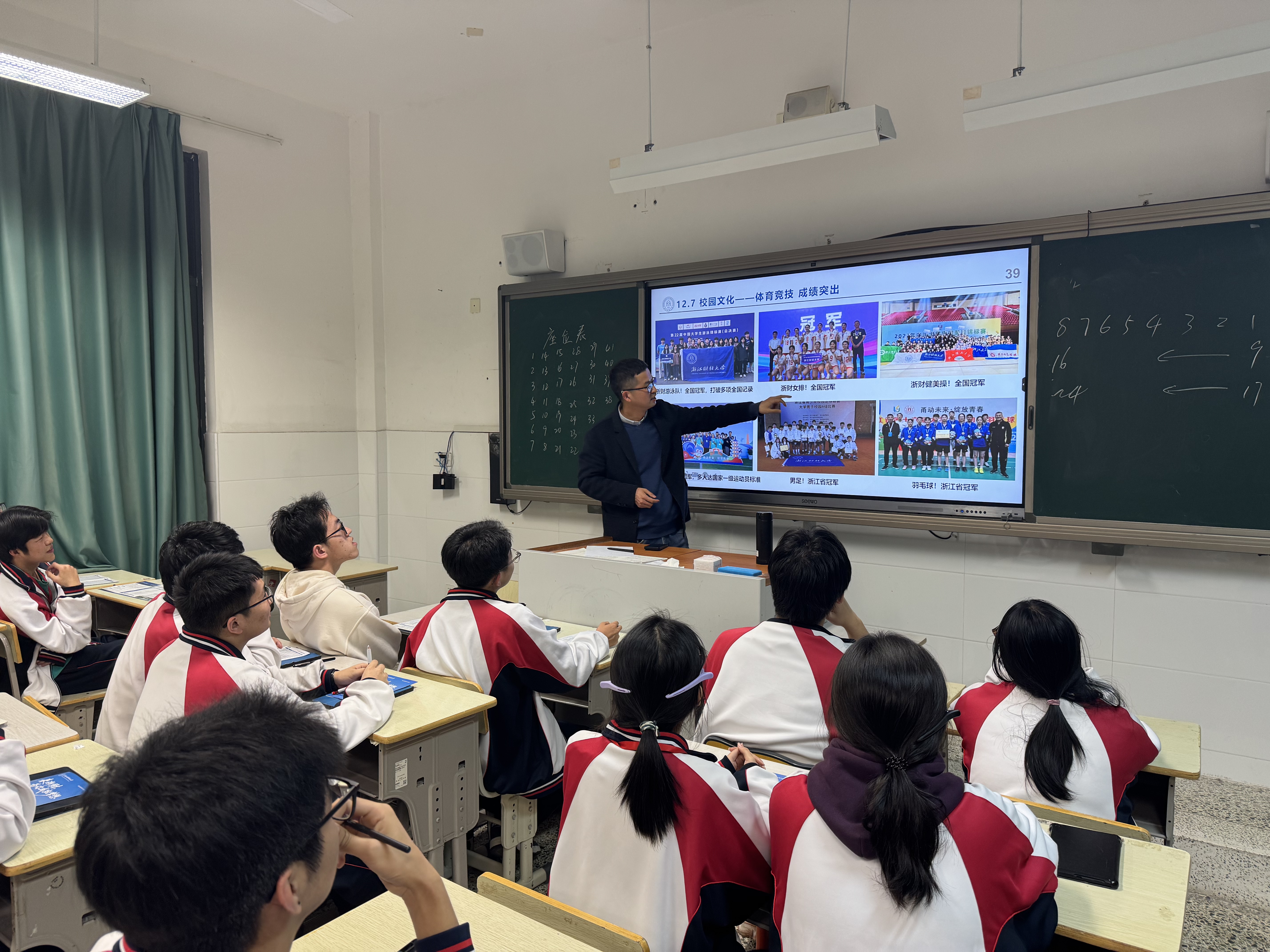 宣讲会现场座无虚席,怀揣财经梦想的高三学子齐聚一堂。本次宣讲以"来浙财,为你成就梦想"为主题,金国权老师系统介绍了我校的学科优势、师资力量、人才培养模式及毕业生就业等方面的情况。结合近年数据,金老师为考生们梳理了全省高校"三位一体"招生形势,并详细解读我校报名条件、选拔程序、综合成绩核算等政策要点,特别就报考策略、专业选择、校测准备等实操问题给予针对性指导。此外,金老师还通过PPT,向同学们展示了学校现代化的智慧教室、藏书丰富的图书馆、与国际接轨的学术交流平台以及多彩的学生活动,让考生们直观感受"学在浙财"的浓厚氛围。