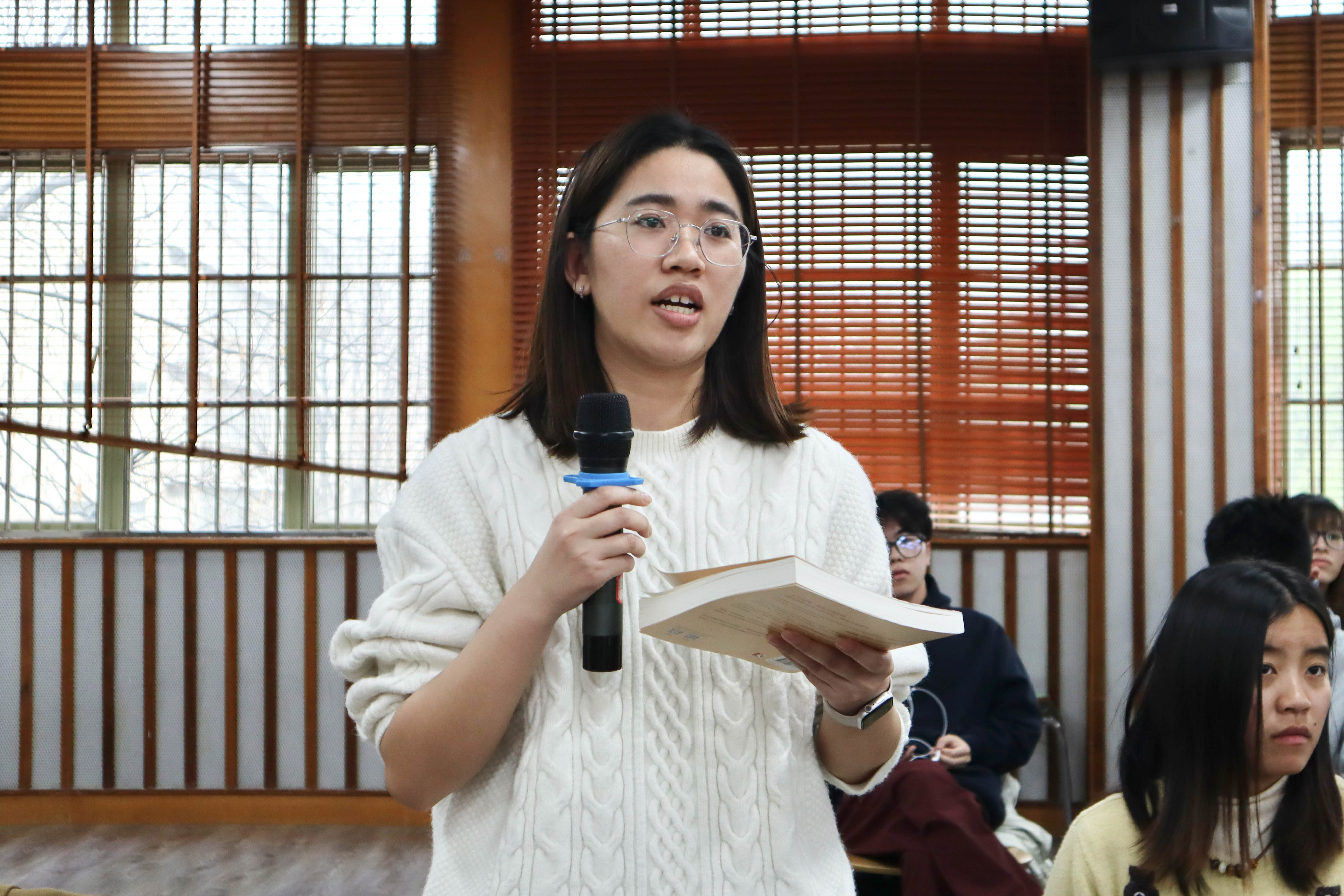 25级会计6班马宇晴同学说道:“丁老师好!我并非汉语言专业,但平时十分喜爱古诗。我发现书中收录了许多平时难得一见的诗词,想请教您,我可以通过哪些渠道去了解这类与货币相关的古典诗词?”
